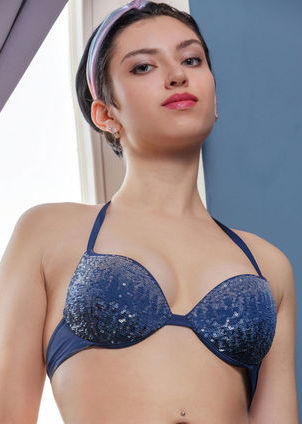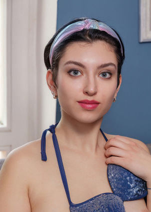Chantal In Glamorous Blue Lingerie That Emphasizes Her Slender Waist