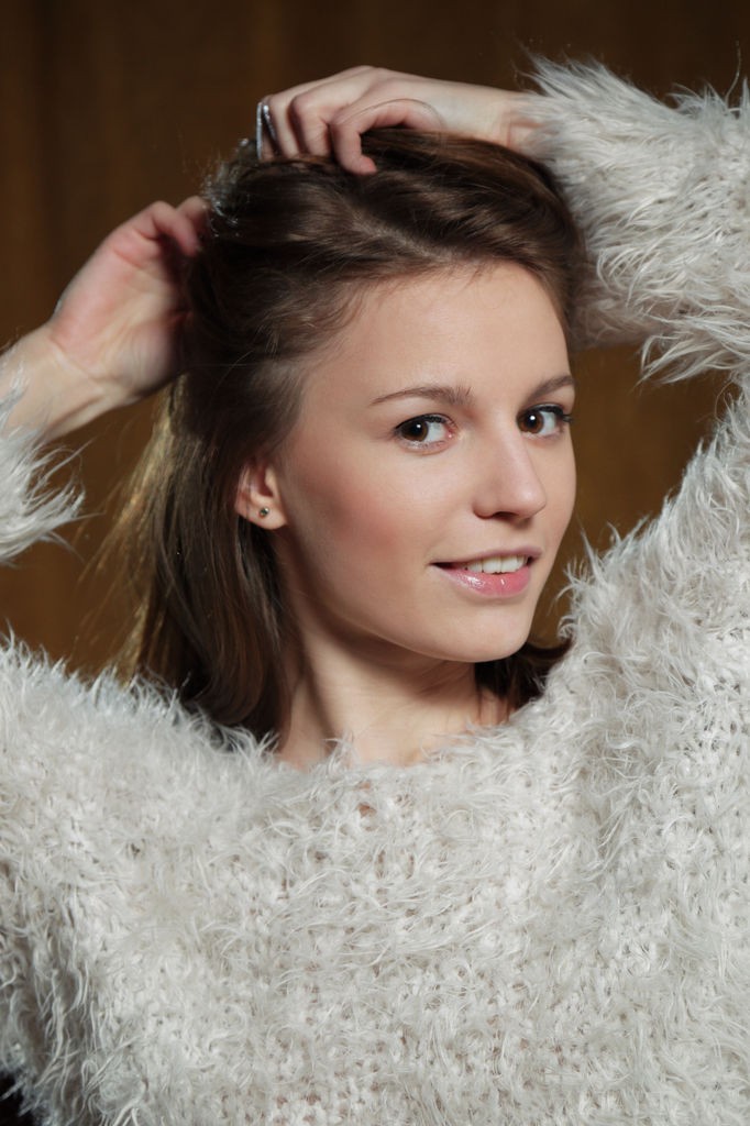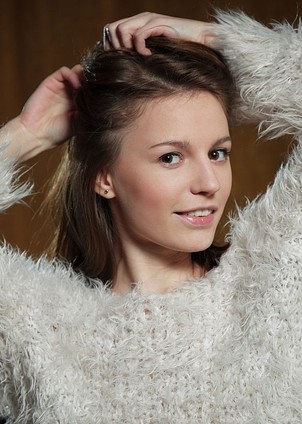 Sofi Shane - Skinny sweetie takes off her sweater to show tits