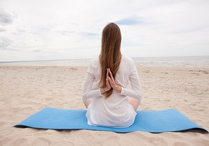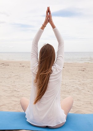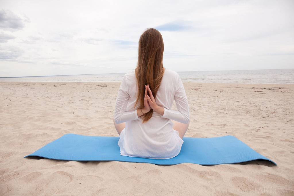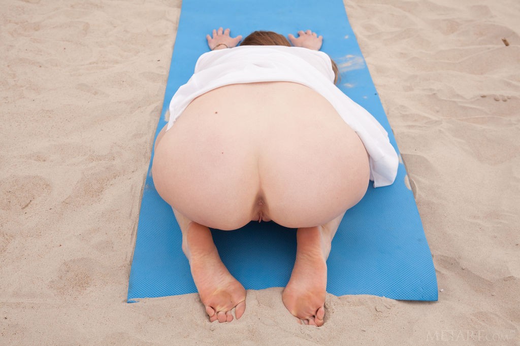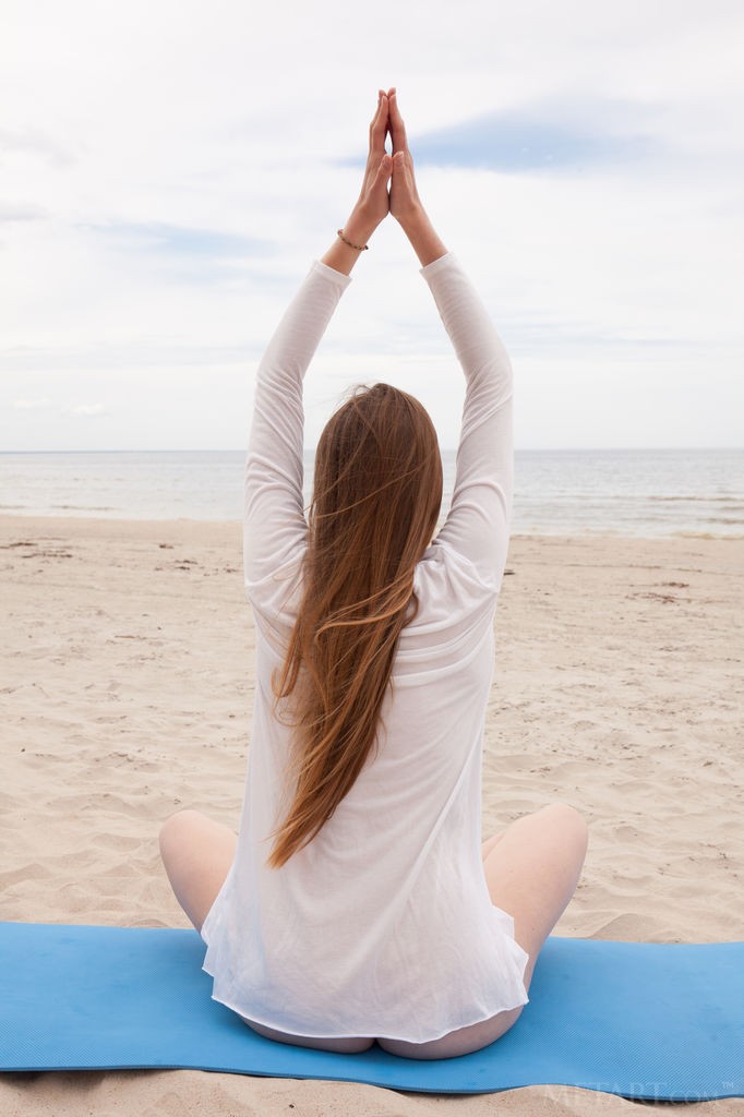 Matilda Sun - Slim brunette performs her naked yoga exercises on the beach