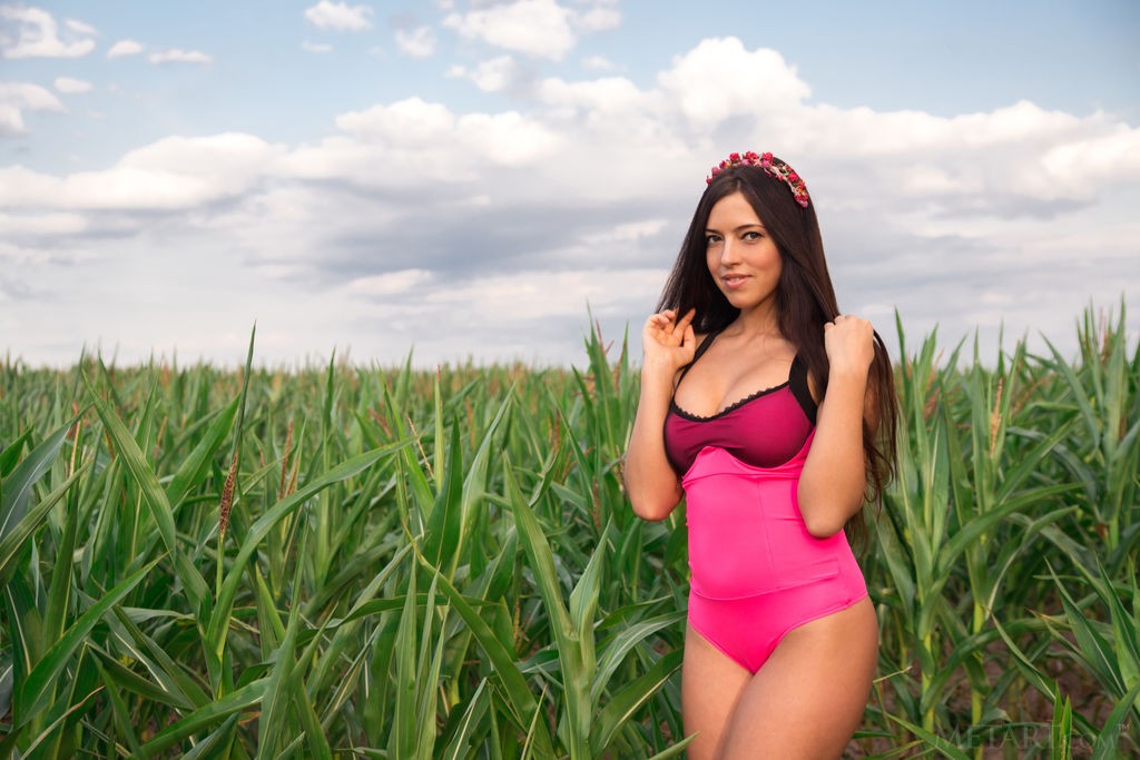 Diana Dulce - Delicate brunette teen beauty striping naked in the field