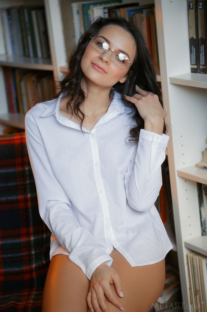 Ardelia A - Curly haired skinny brunette teen exposes her body sensually