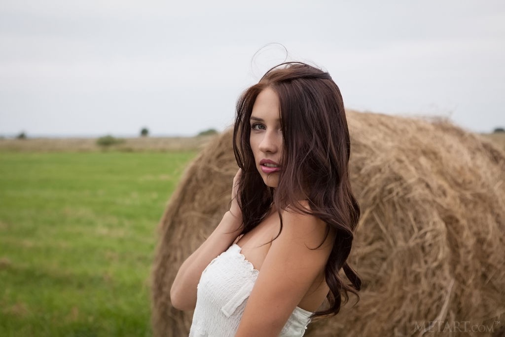 Niemira - Delightful brunette shows awesome body at filed by hayloft