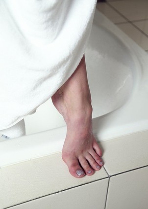 Beautiful brunette takes a hot bath, she carefully washes every inch of her naked body in the hope of getting the best orgasms in her life with a shower head