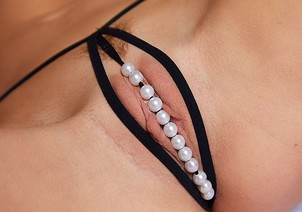 Skinny young girl is hotly bending on the bed in various exciting hot poses wearing black string sex panties and charmingly fondling her tiny tits and then pulling off underewear and spreading knees to show off her sexy haircut teen pussy