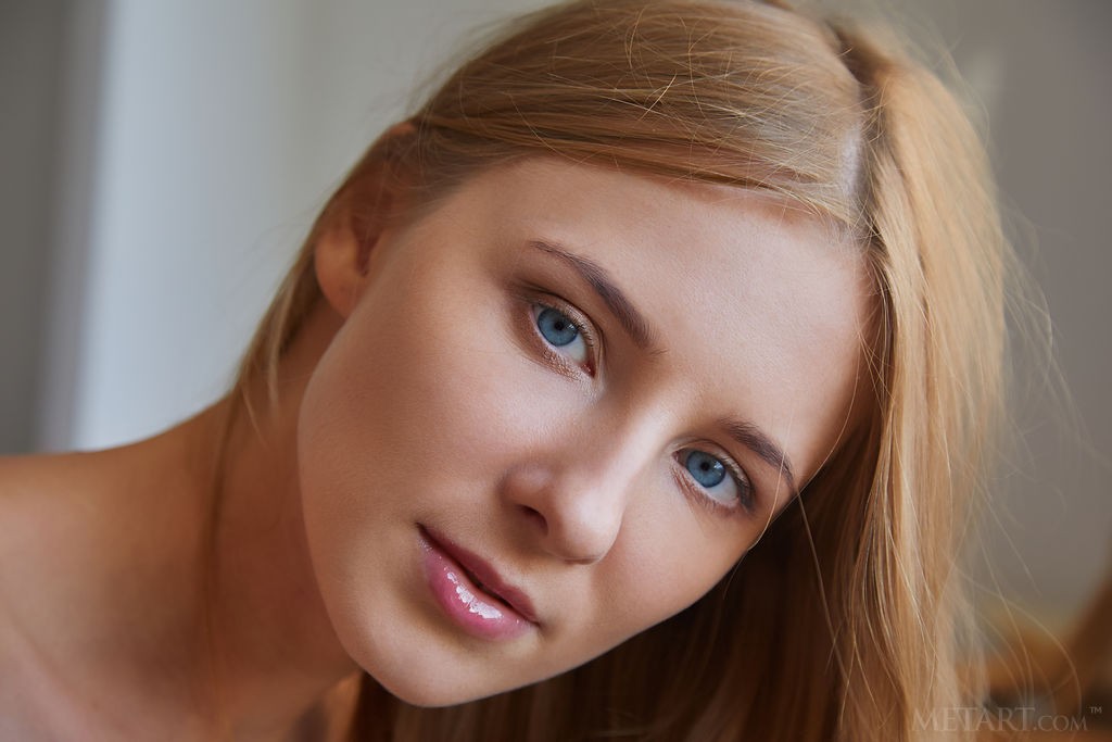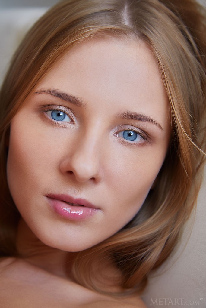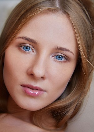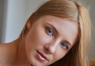 Nimfa - Gorgeous blonde with lustful blue eyes sexily poses nude