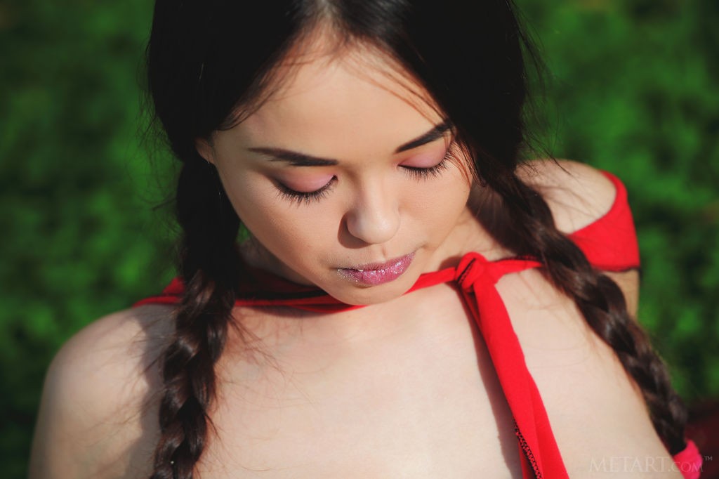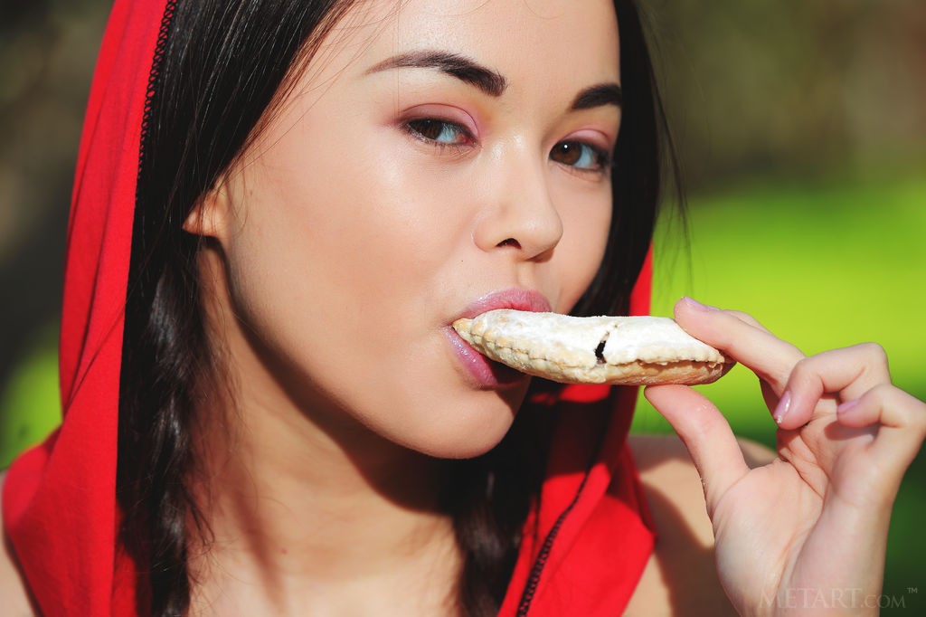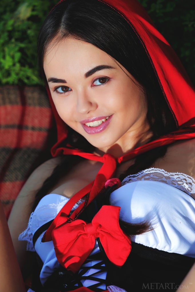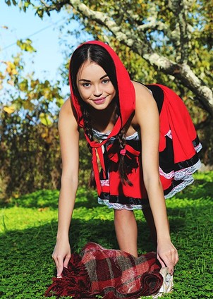 Li Moon - Little Red Riding Hood shows her very tight, shaved pussy