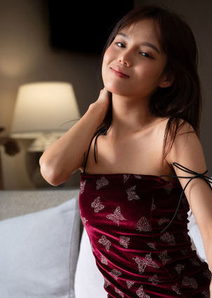 Rose Sarinz Slipping Off Her Red Velvet Dress To Reveal Her Petite Body