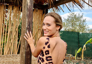 Venere Moras Peeling Off Her Figure-hugging Leopard-print Dress As She Goes